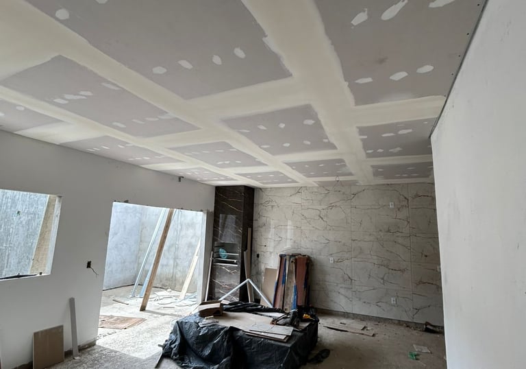 Instalamos forros de drywall que valorizam seu espaço com acabamento perfeito.